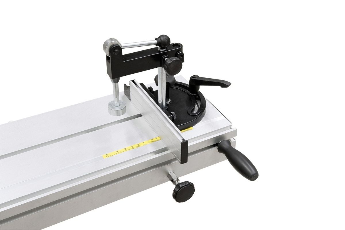 - Kulmavastetta ja puristinta voidaan liikuttaa koko liukupöydän pituudelta