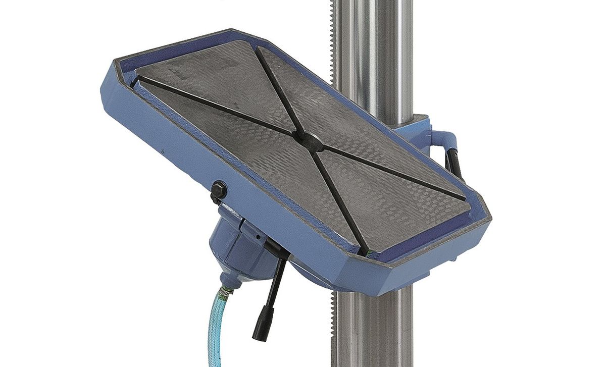 - Jalustassa olevat T-urat mahdollistavat korkeiden työkappaleiden kiinnittämisen