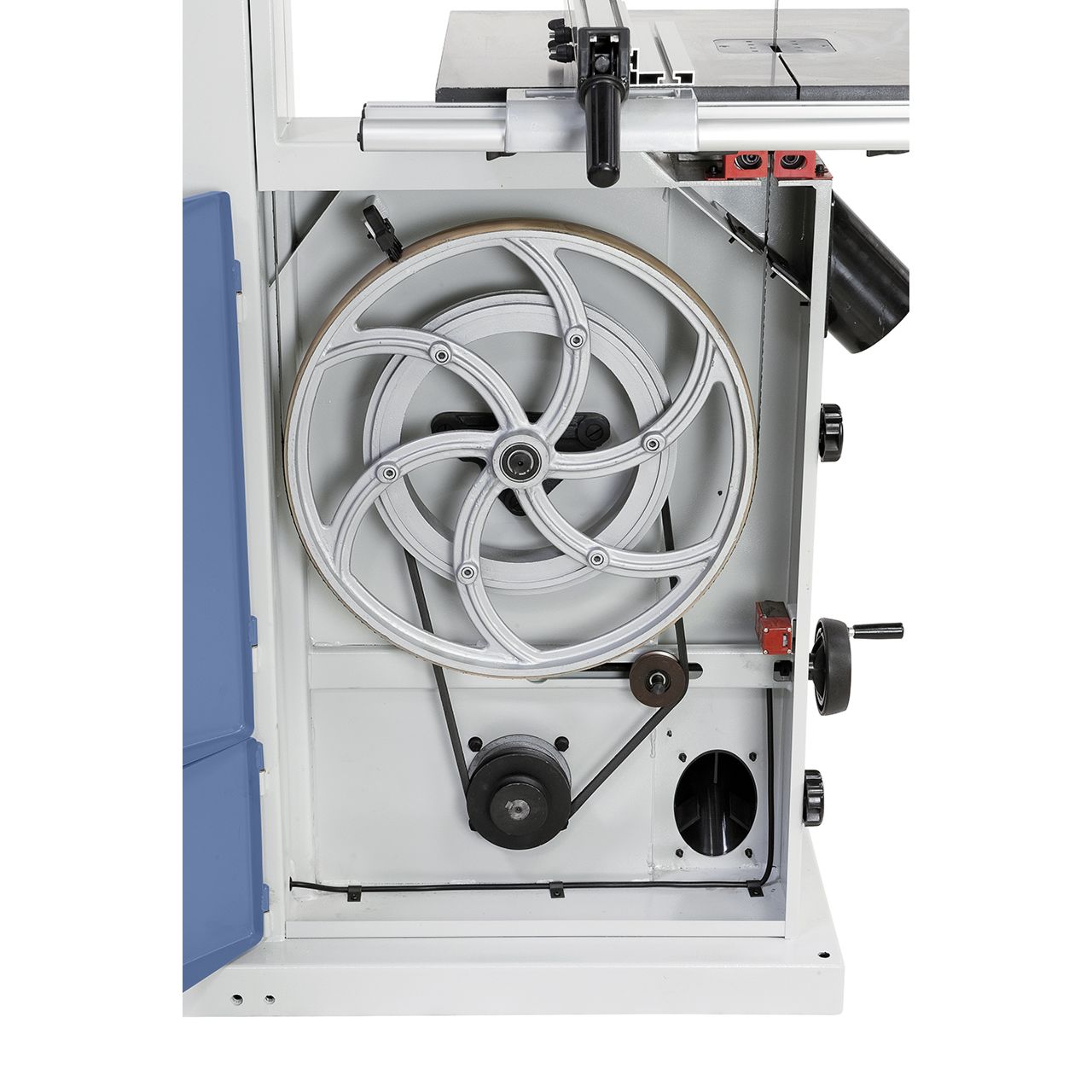 - Etupuolella oleva tarkistusluukku helpottaa terän kireyden tarkastamista