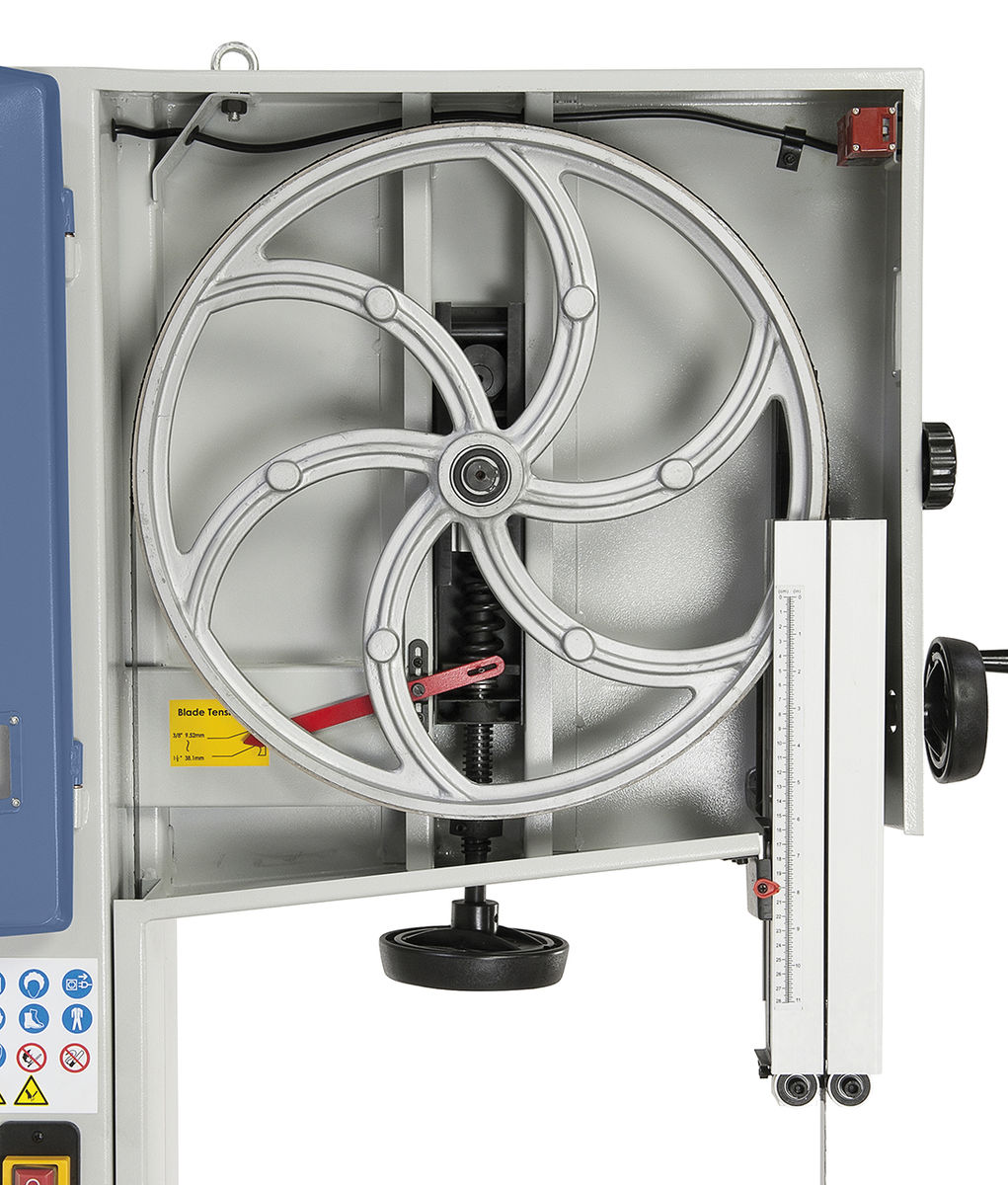 - Etupuolella oleva tarkistusluukku helpottaa terän kireyden lukemista