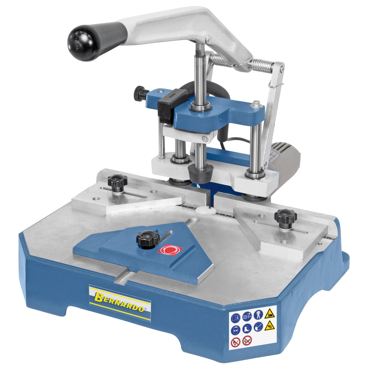 KNF 1 manuaalinen kiilaurajyrsin on kompakti laite kun haluat tehdä kiilauraliitoksia taulunkehyksiin, kranssikehyksiin, segmentaalisia kaaria, ikkunakehyksiä ja monia muota nopeasti ja kustannustehokkaasti.