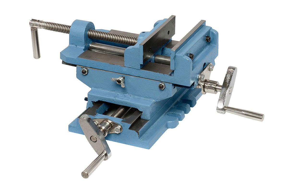 Erittäin kätevä ja edullinen puristin joka liikkuu kahteen suuntaan kuten ristisyöttöpöytä.Leukojen leveys 125 mm.