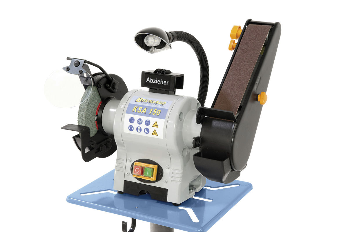 Penkkihiomakone Bernardo KSA 150 on varustettu kivellä ja hiomanauhalla.