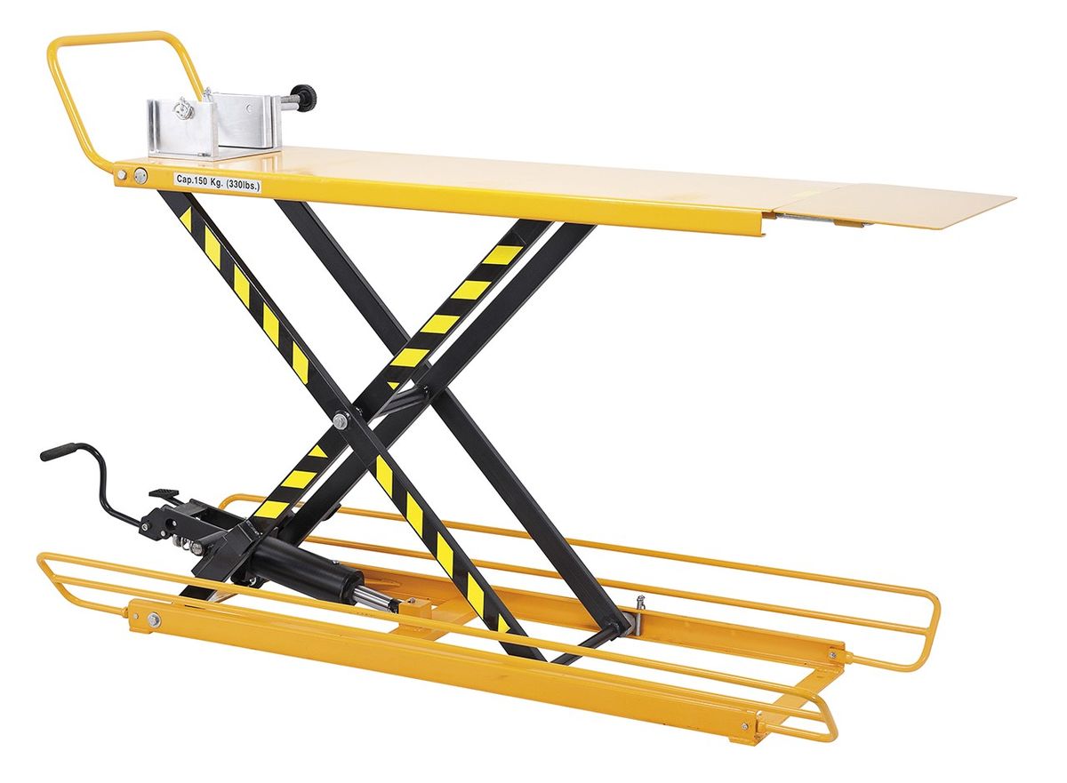Laadukas nostin moottoripyörille.Etupyörän kiinnitin sekä luukku takapyörälle ja ajoramppi.