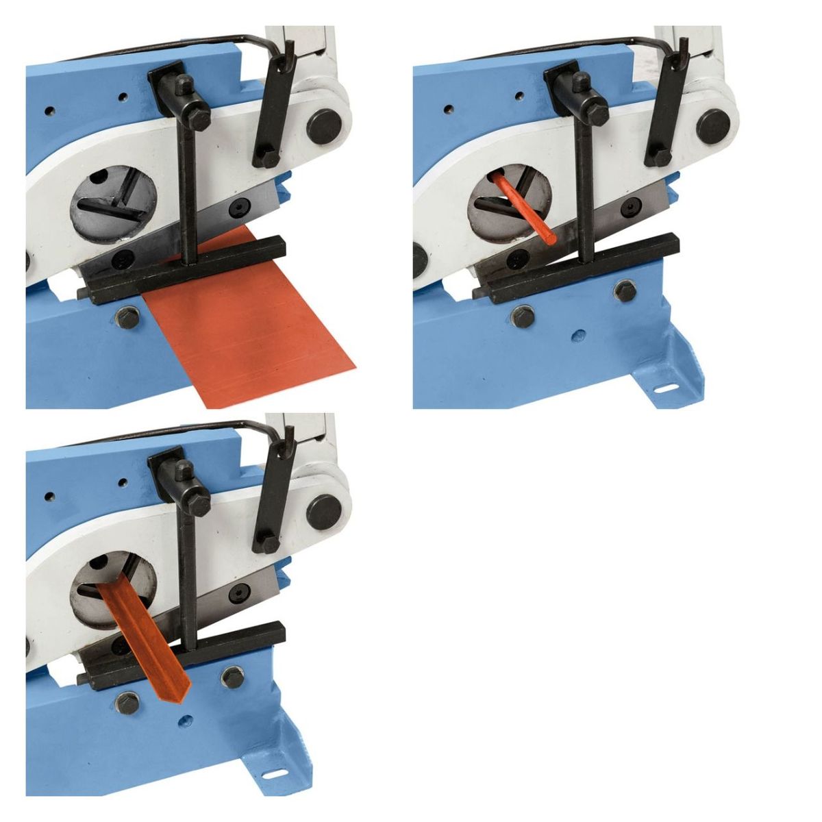 - Leikkaa peltiä, latta-, pyörö- ja nelikulmaterästä sekä L- ja T-profiileja
