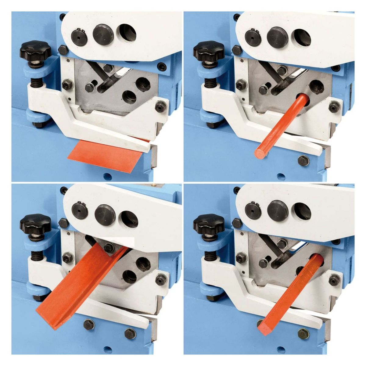 - Leikkaa peltiä, latta-, pyörö- ja nelikulmaterästä sekä L- ja T-profiileja