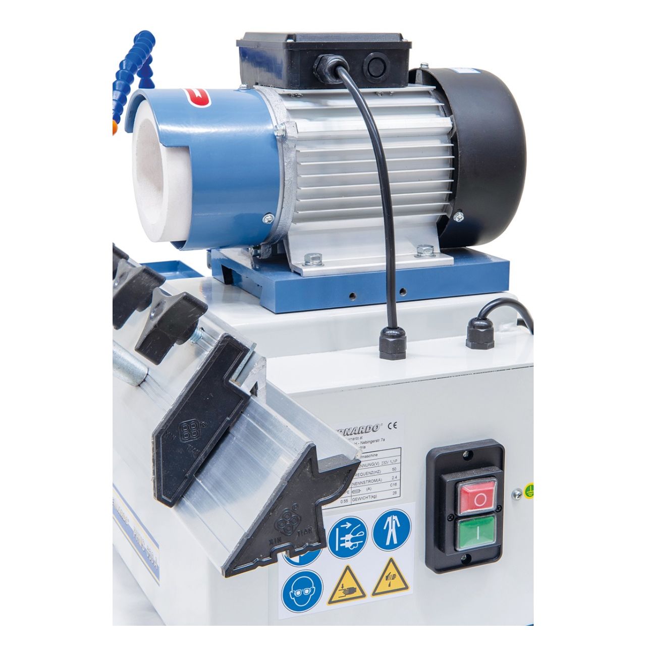 - Käsipyörä etupuolella hiontakulman säätämiseen