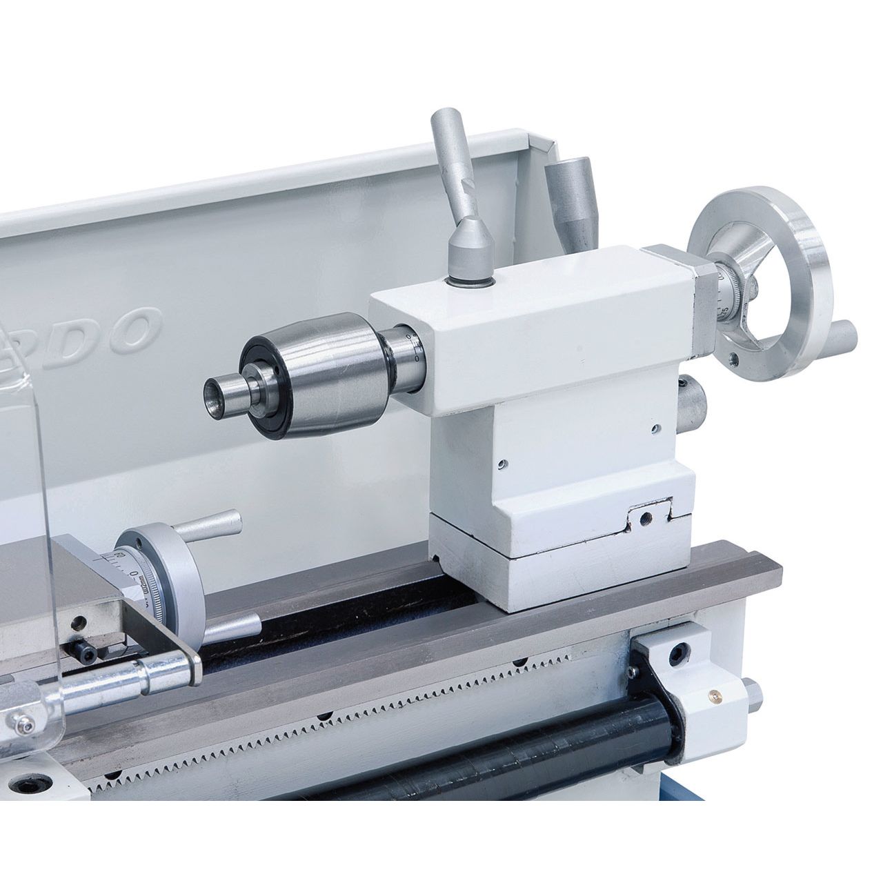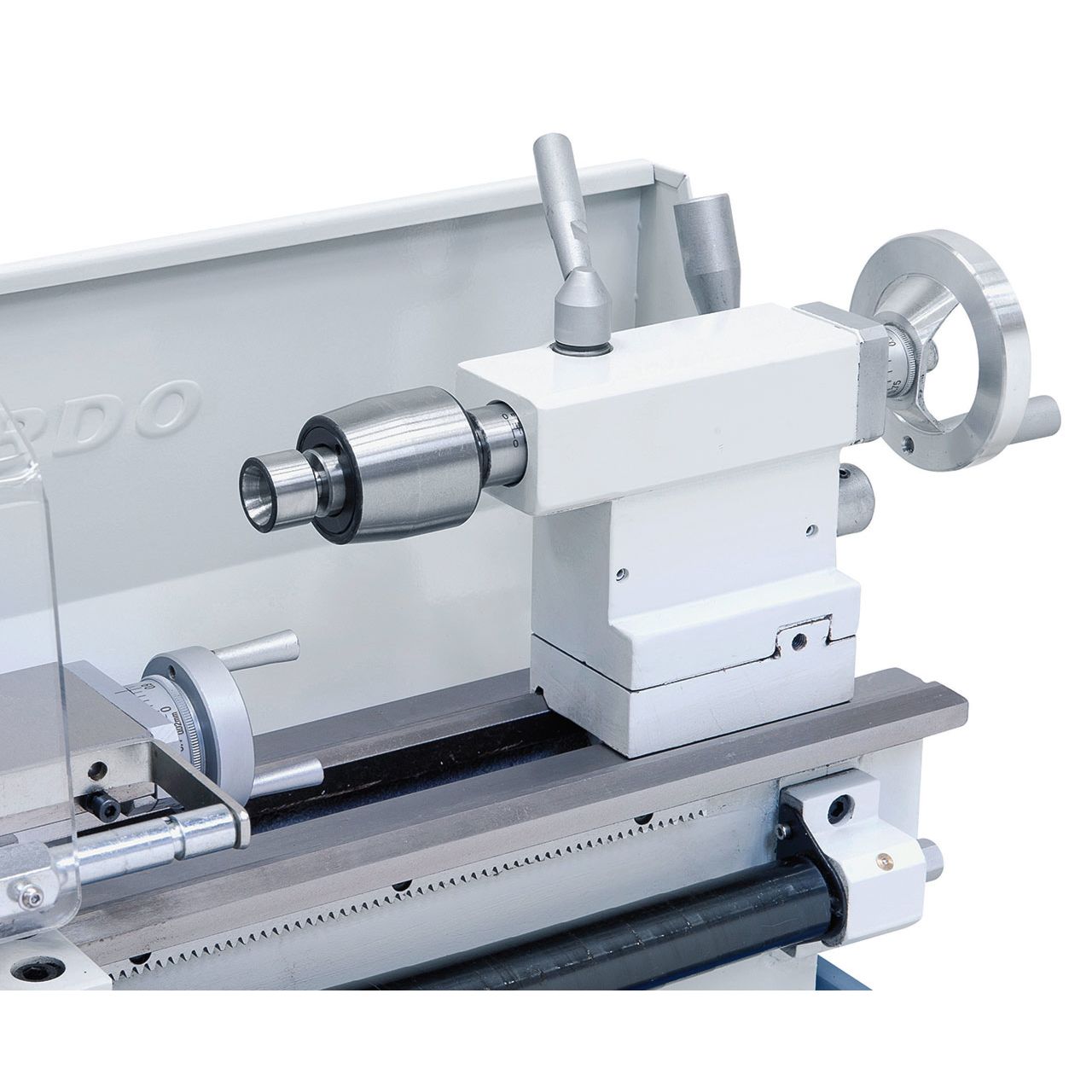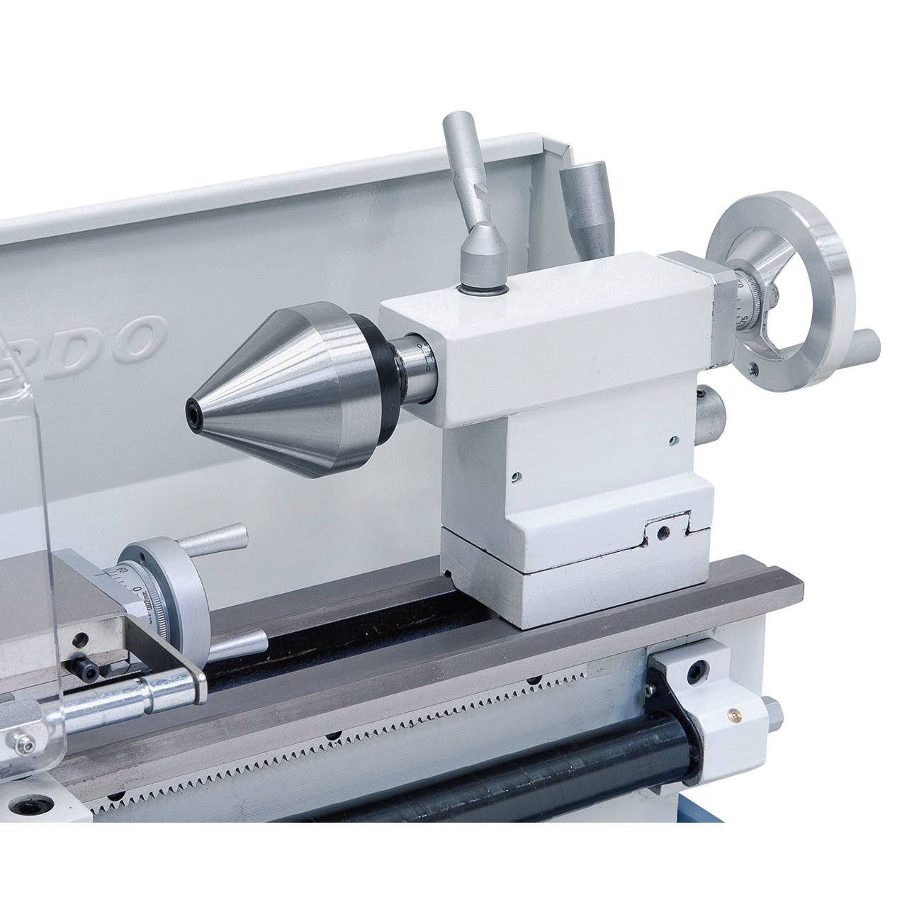 • Vivulla kiristettävä takapylkkä voidaan säätää kartiosorvausta varten