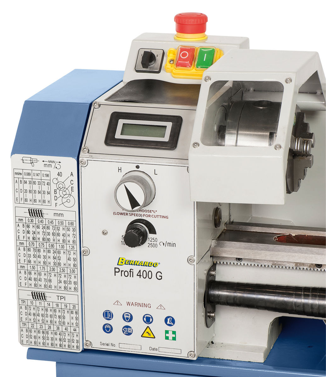 Profi 400 G on alennusvaihteella varustettu malli joka mahdollistaa kierrosluvun ilman remmien siirtämistä.Digitaalinäyttö kierrosluvulle takaa luotettavan nopeuden lukemisen suoraan näytöltä.Karanlaakerit P5-laatua.