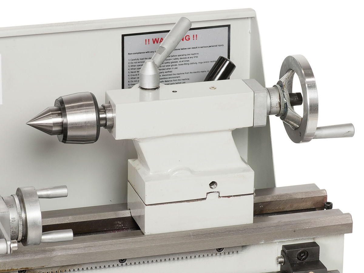 - Vivulla kiristettävä takapylkkä voidaan säätää kartiosorvausta varten