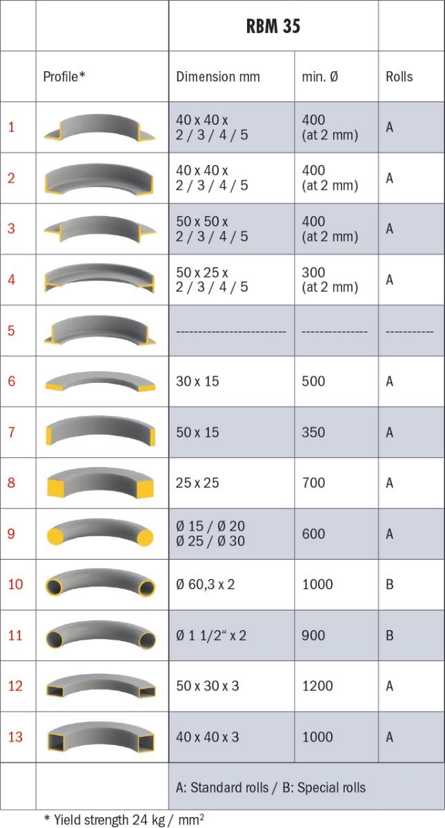 - Käytettävissä mm. teräksestä, alumiinista, messingistä valmistettujen putkien ja profiilimateriaalien taivutukseen