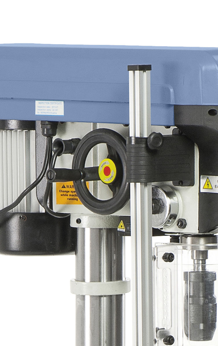 Vankkarakenteinen pylväsporakone variaattorilla.Porausteho 16 mm.