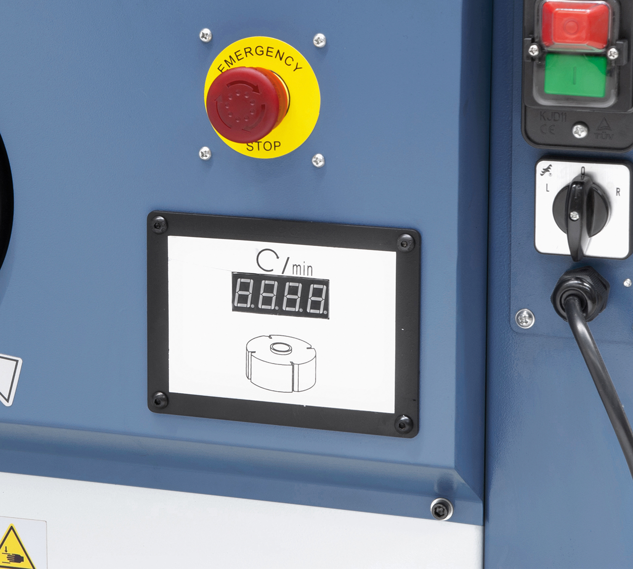 - Helppolukuinen kierrosluvunnäyttö karan kierrosluvulle