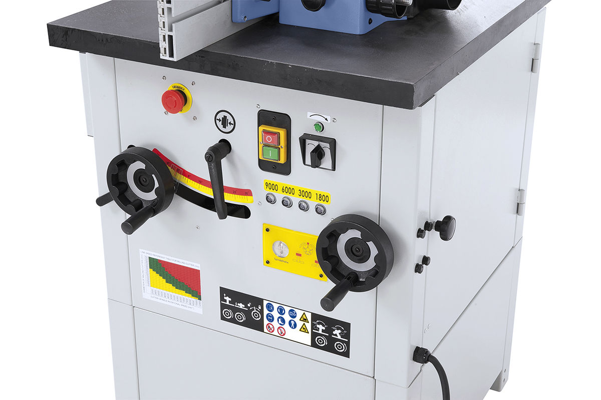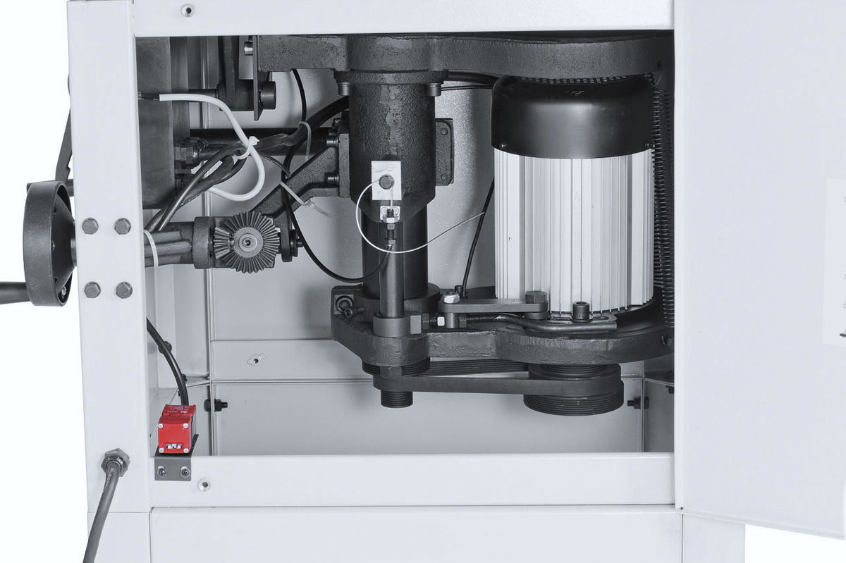 Lisävarusteena saatavana liukupöytä, jonka avulla isojen työkappaleiden työstäminen sujuu kätevästi. Karan kierrosnopeuden näyttö helppolukuisella LED-näytöllä. Ergonomisesti muotoilluilla käyttöveiveillä työskentely on helppoa. Kallistuva kara -5 – +30 astetta.Koneessa myös karan suunnanvaihto.