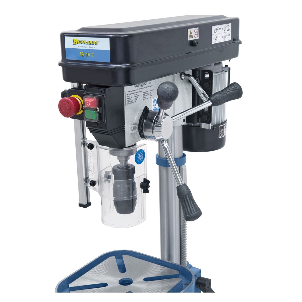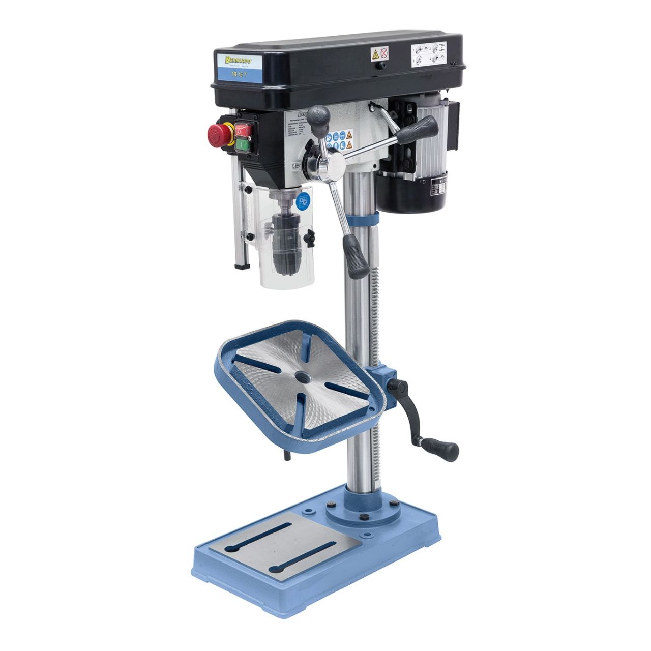 - Porapöydän kallistus (±45°), Korkeus säädetään hammastangolla