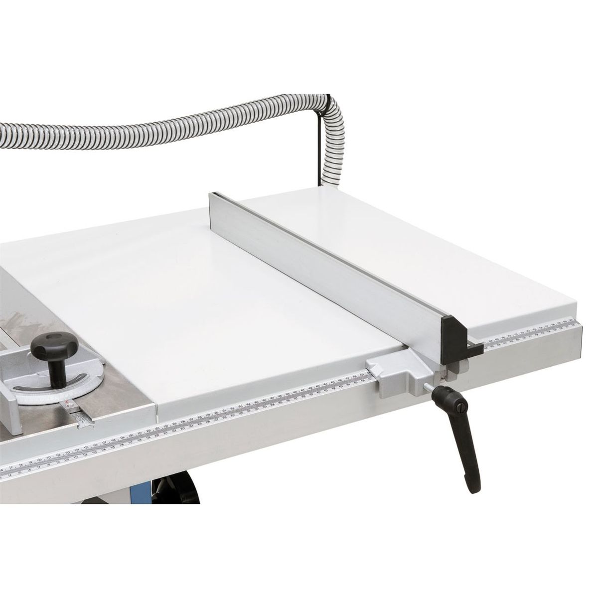 • Vakiona oleva ja alumiinivasteella varustettu liukupöytä parantaa koneen käyttömukavuutta