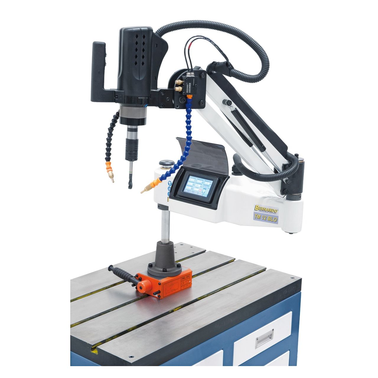 - Mukana kääntövarsi, jossa on suuri säde kierreporien helppoon asemointiin työkappaleessa