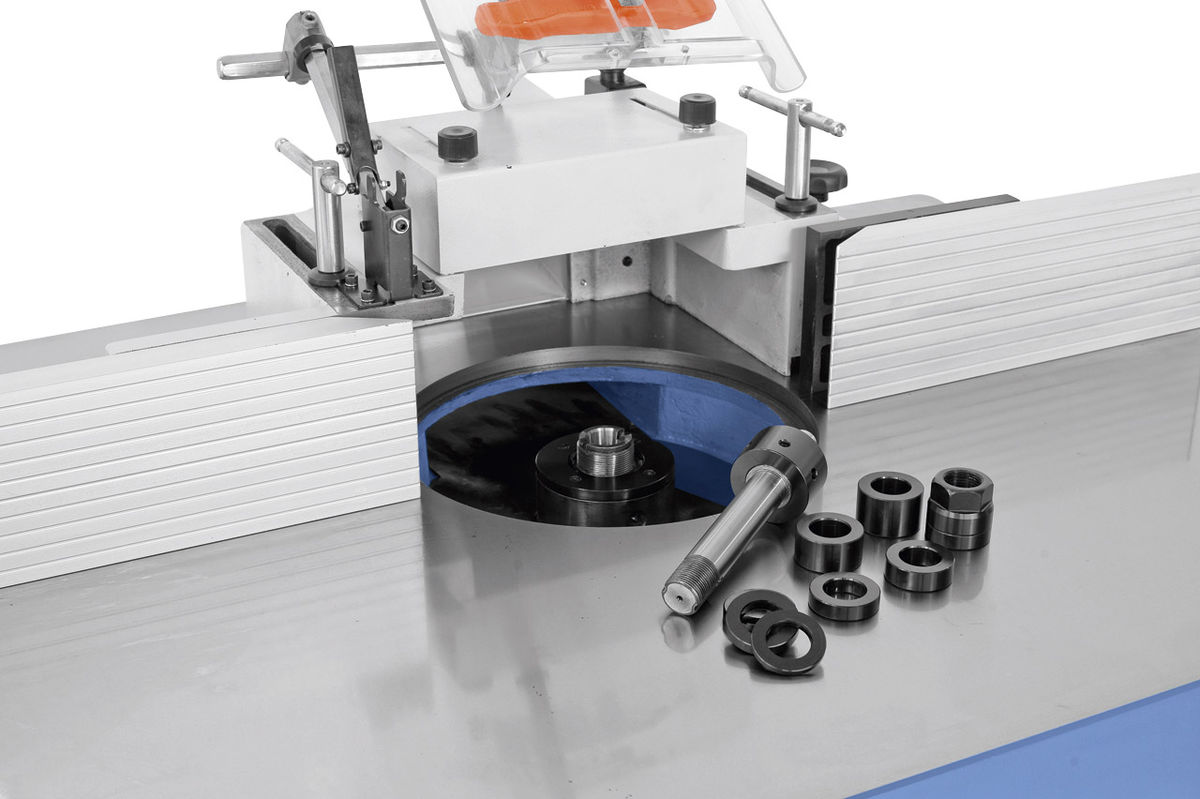 - Tappijyrsinpöytä sisältää teleskooppivasteen, tappijyrsimen suojuksen (300 mm) ja hätä-seis-kytkimen
