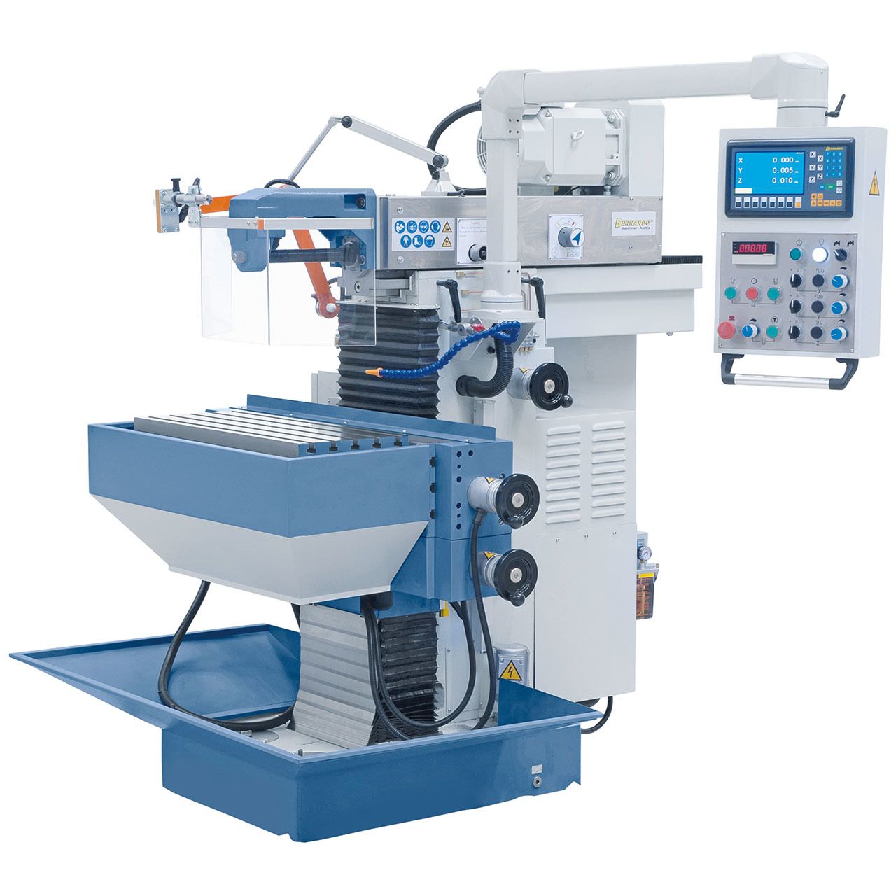 - Portaattomasti säädettävä syöttö ja pikatoiminto kaikissa akseleissa, käyttökoneistona servomoottori