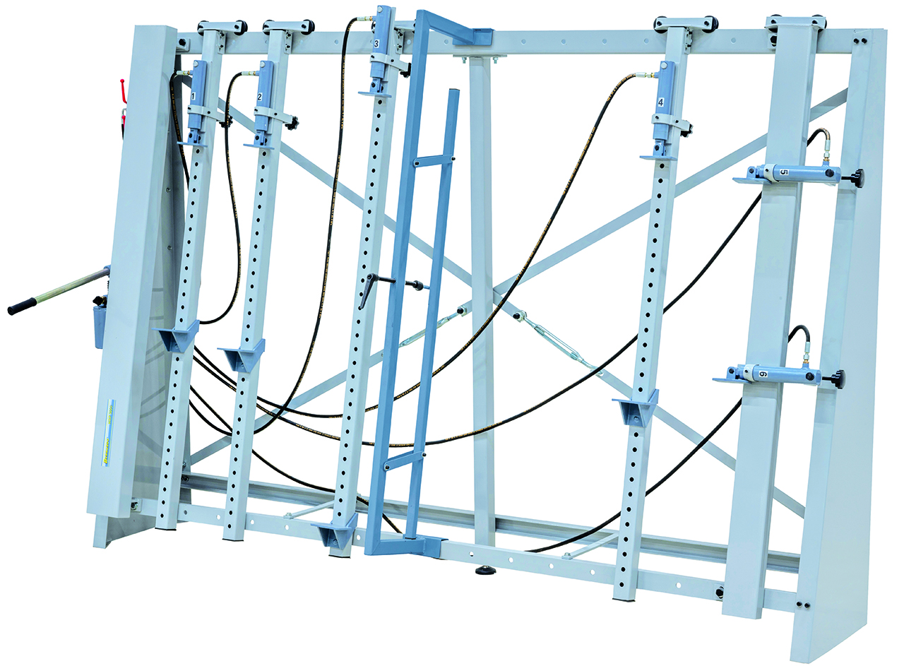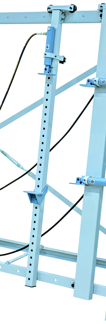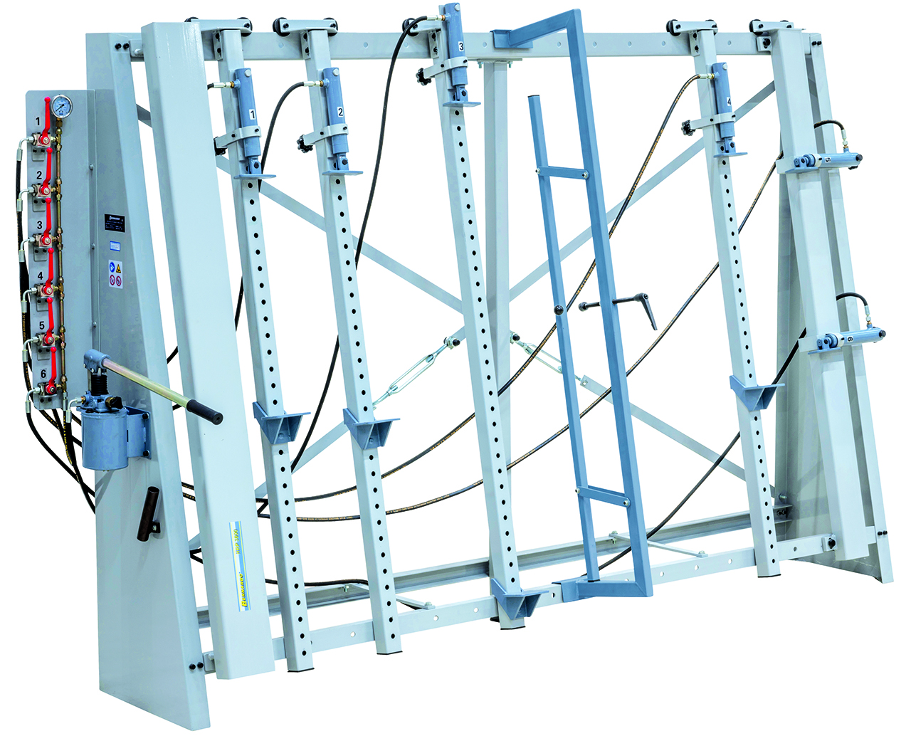 - 4 säädettävää painetankoa, joissa kussakin on pystysuora hydraulisylinteri ja vastakappale