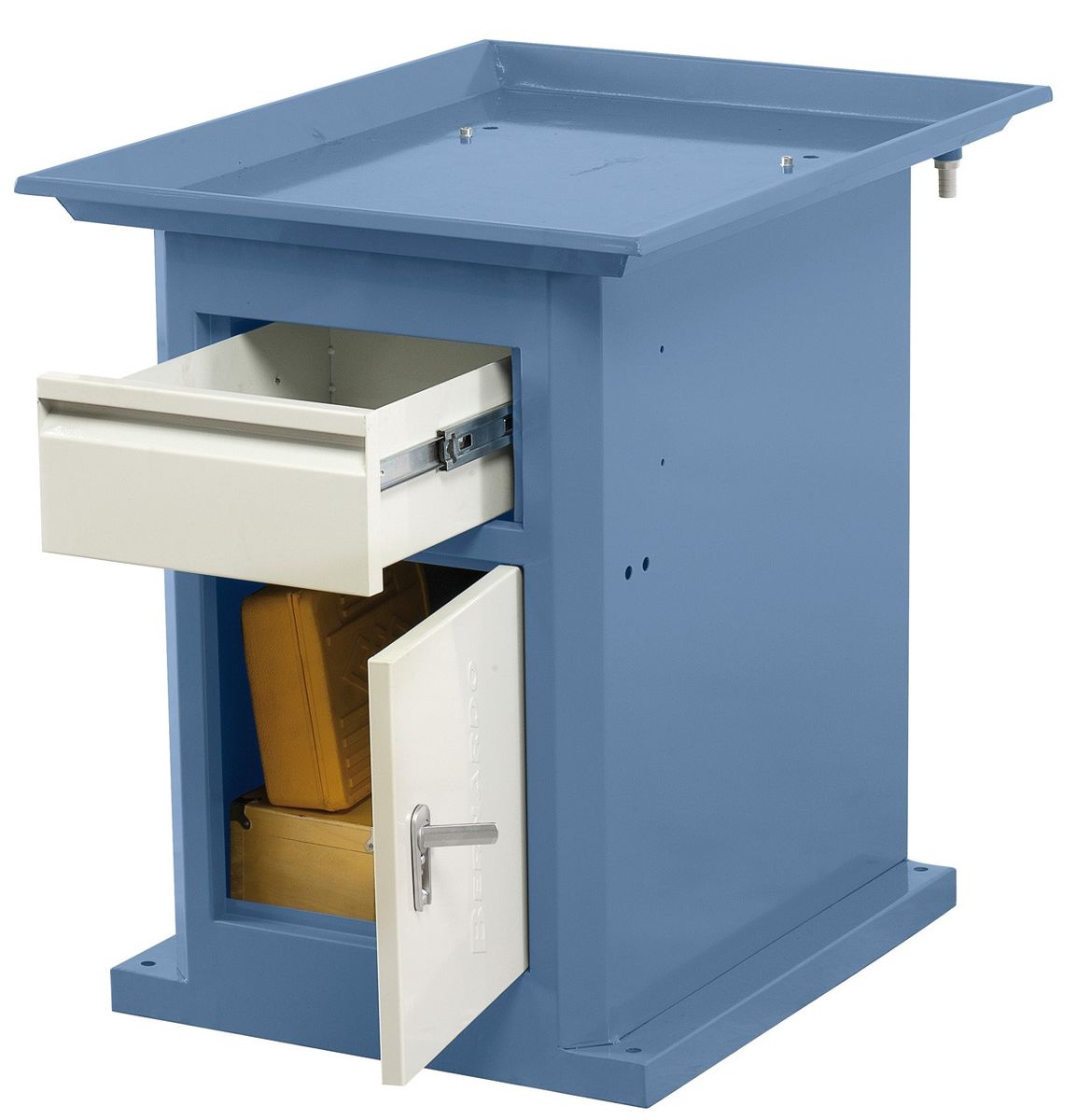 Laadukas jalusta vetolaatikolla ja kaapilla sekä lastualtaalla.