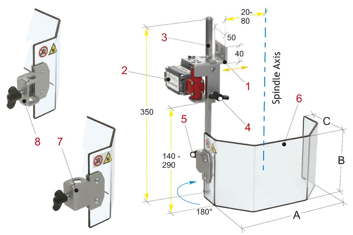 Varustettu mikrokytkimellä ja polykarbonaattipleksillä.