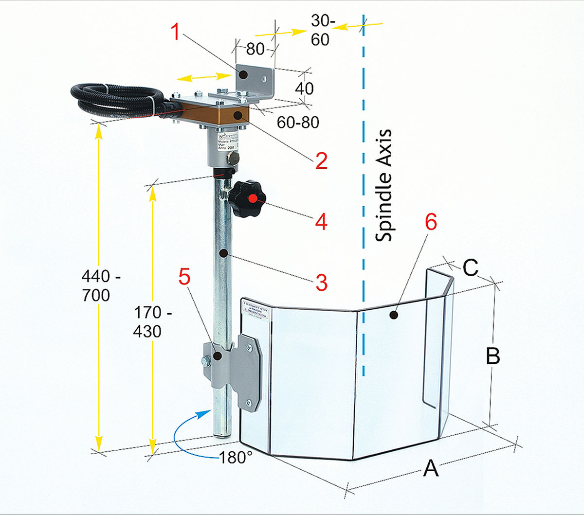 Karasuojus säteisporakoneille mikrokytkimellä.