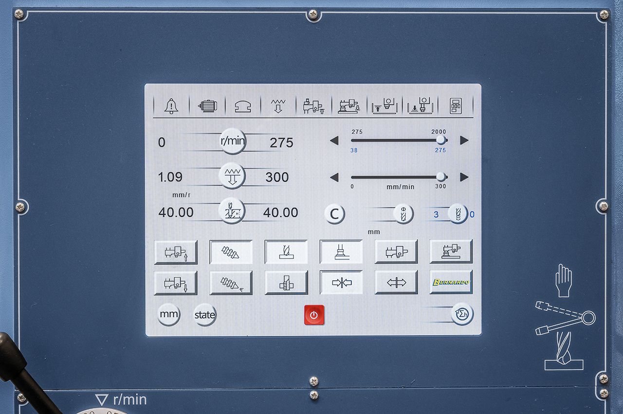 - Suurikokoinen kosketusnäyttö kaikkien asetusten säätämiseen kuten nopeus,poraus/kierteitys, puomin korkeussäätö…