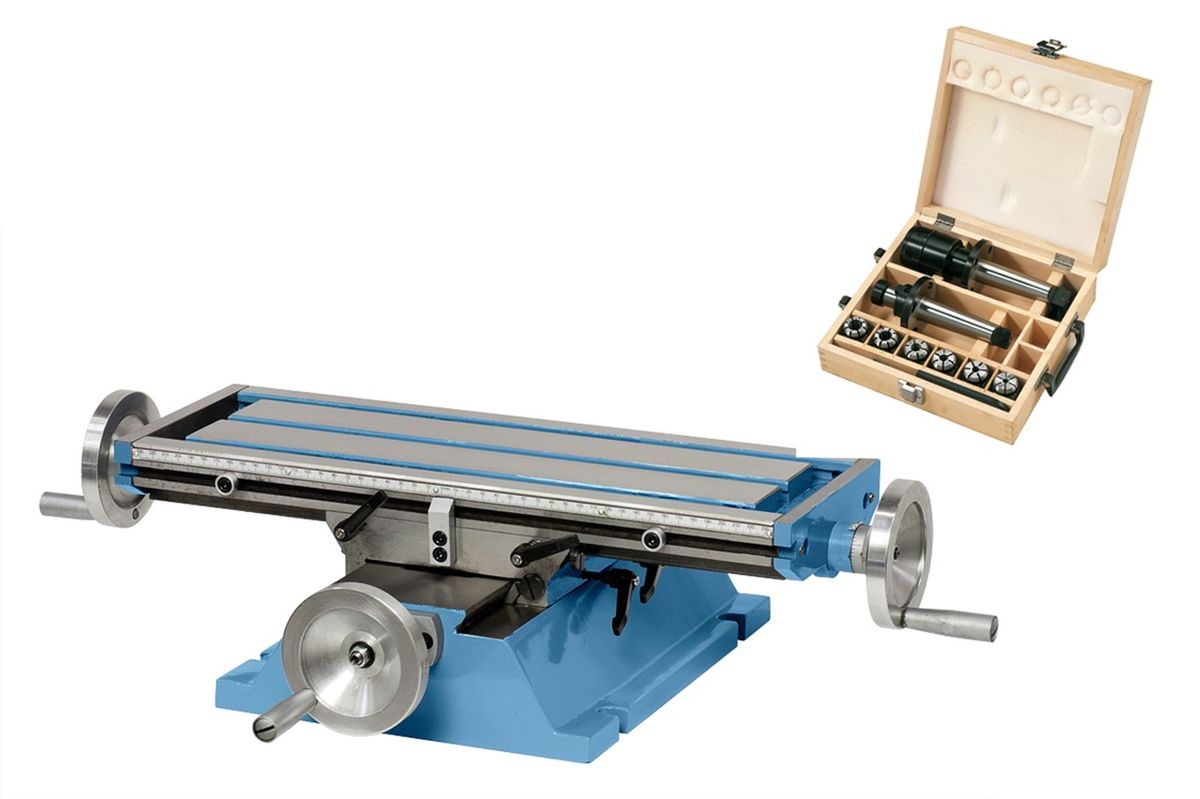 Koneelle SRB 40 sopiva ristisyöttöpöytä ja jyrsinistukka holkkisarja 6 – 16 mm, 8-os.