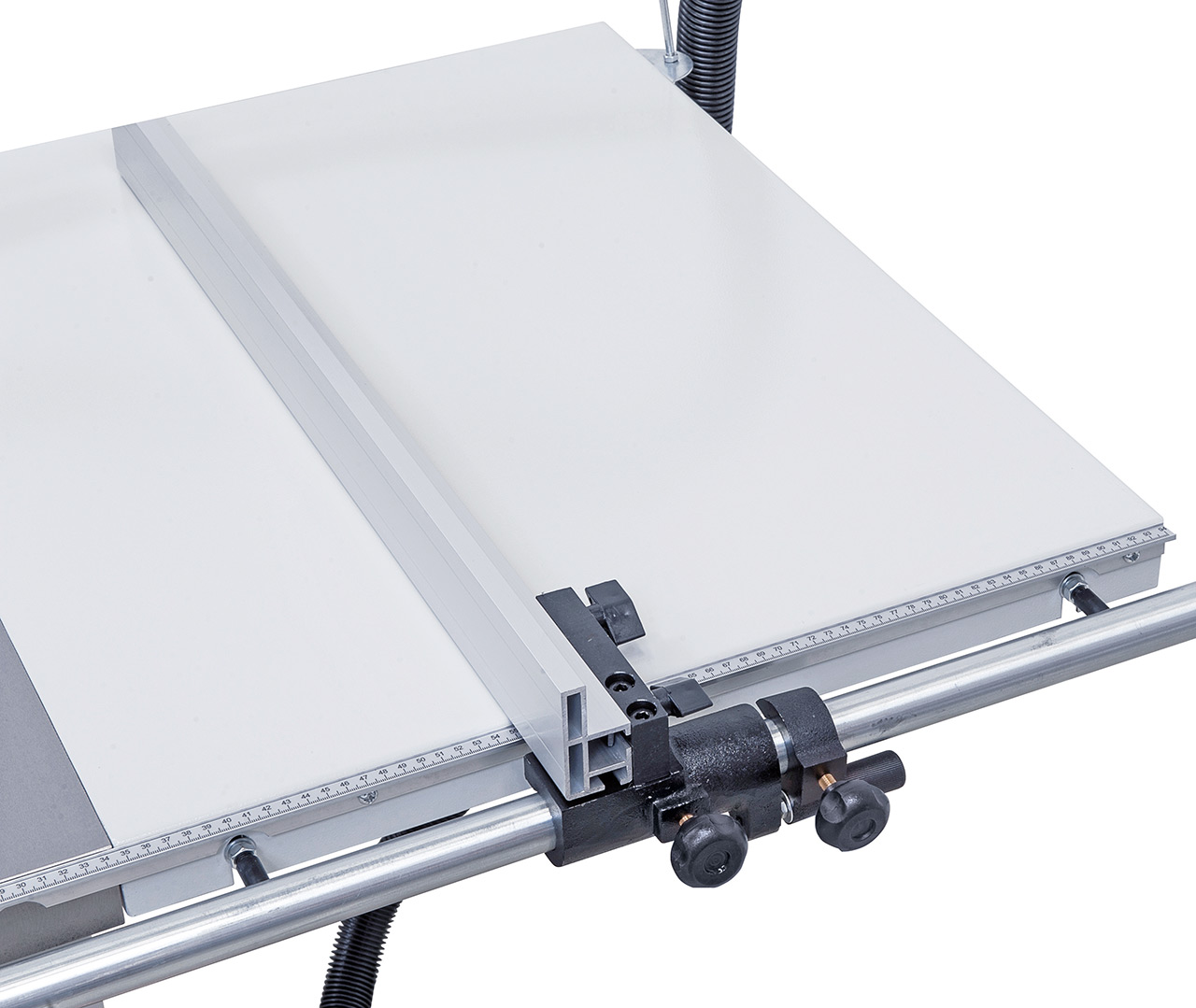 - Vakiona alumiininen liukupöytä, jossa 1360 x 240 mm kokoinen neliöpöytä