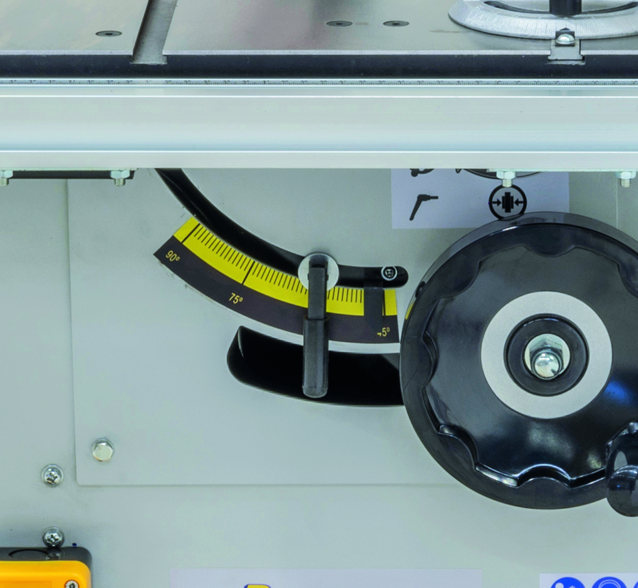 - Käsipyörä mahdollistaa sahayksikön kallistamisen jopa 45°