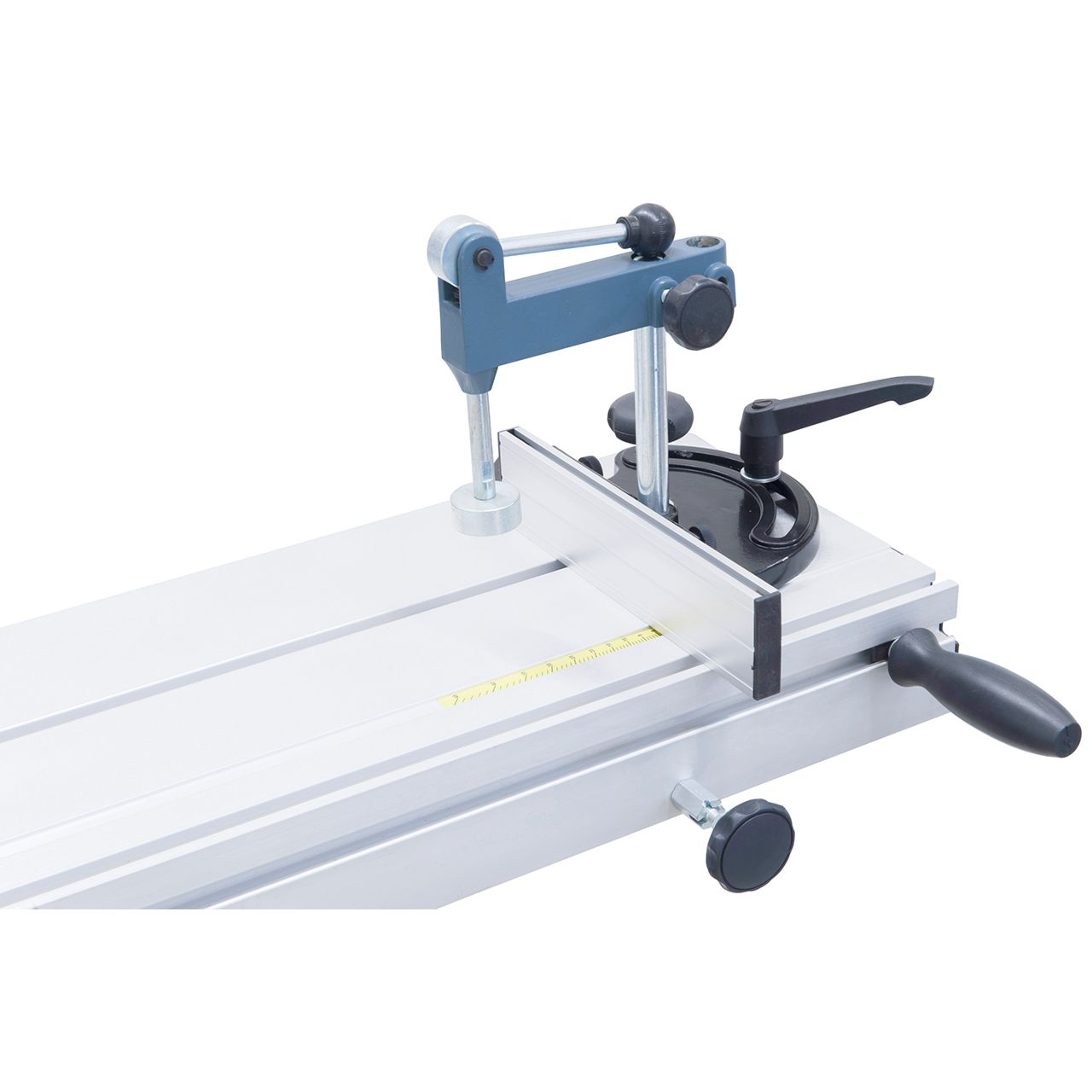 - Kulmavastetta ja puristinta voidaan liikuttaa koko liukupöydän pituudelta